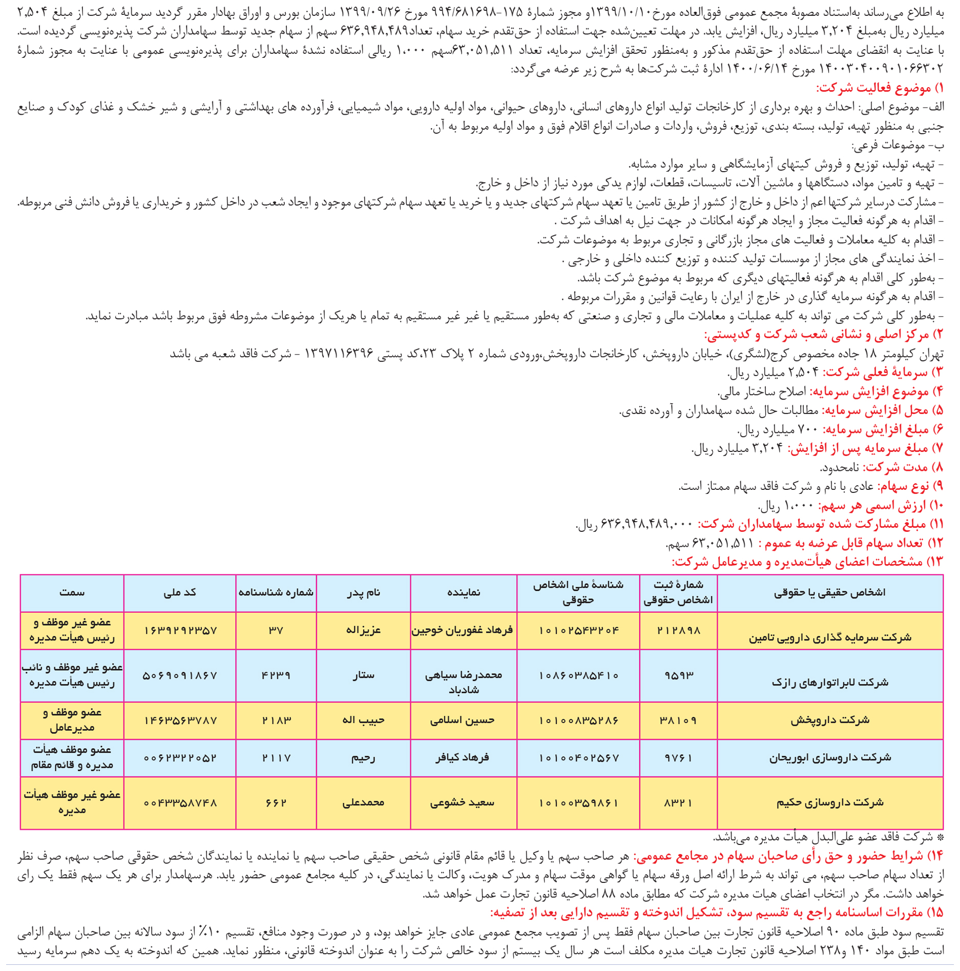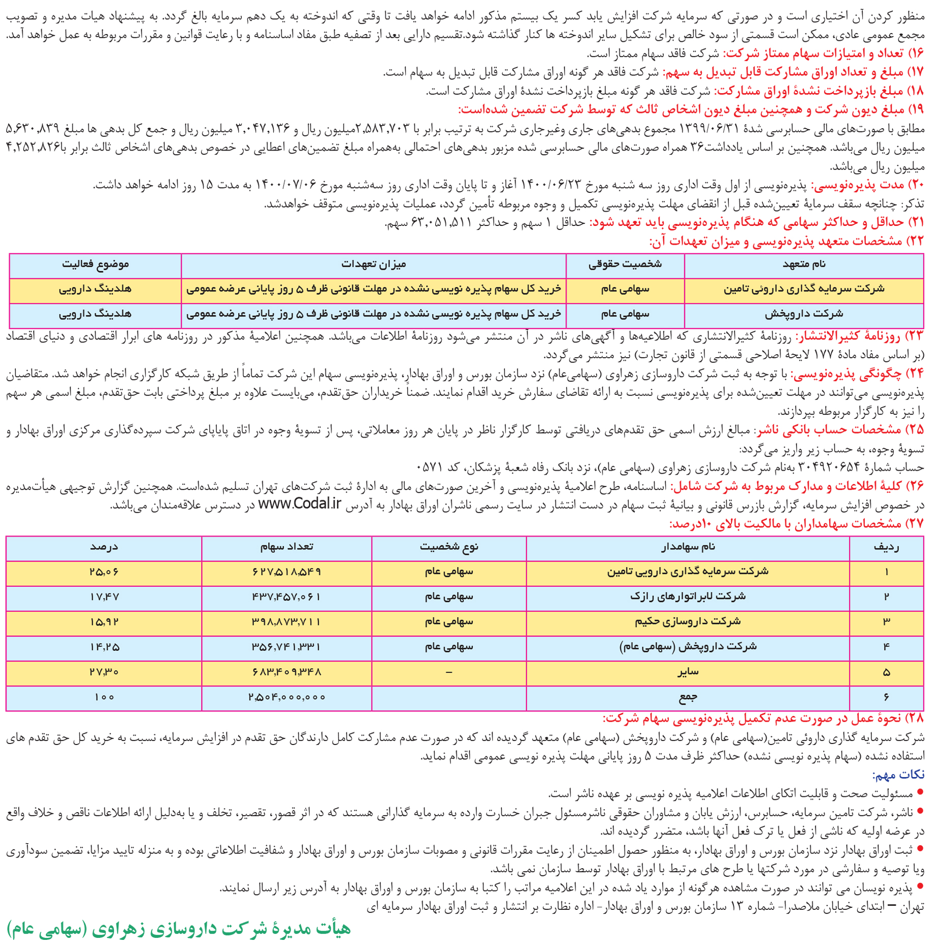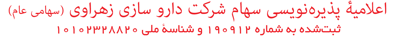 اعلام پذیره نویسی سهام شرکت داروسازی زهراوی